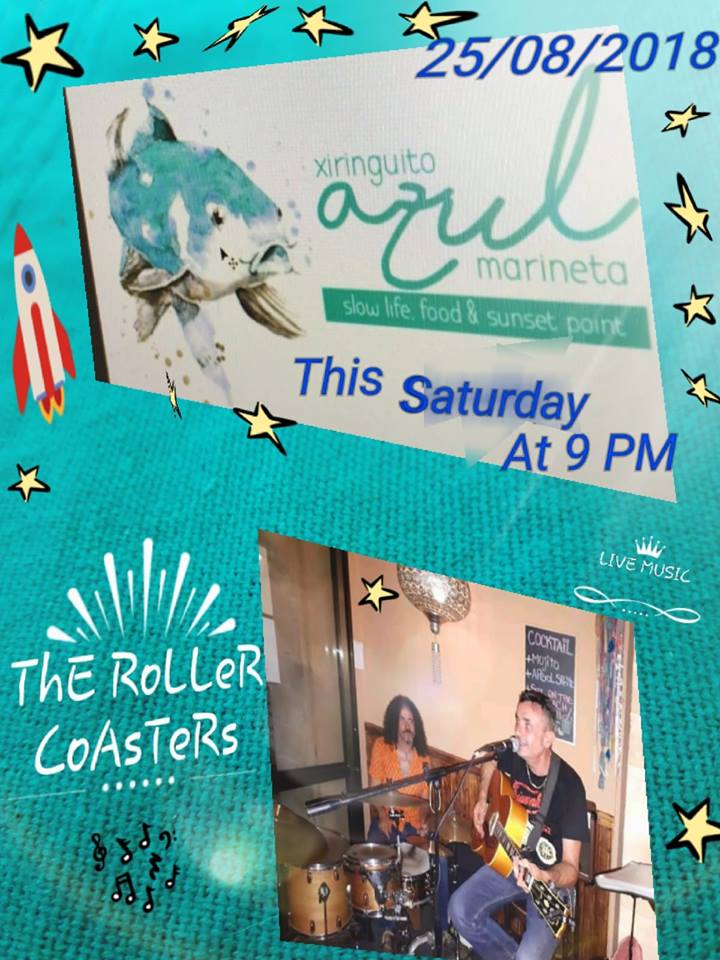 Mañana sábado The Roller Coasters en el Xiringuito Azul de Denia, formación con Álvaro en la percusión y Cuchillo guitarra y voz. Repasando canciones del siglo XX junto al mar y bajo las estrellas.